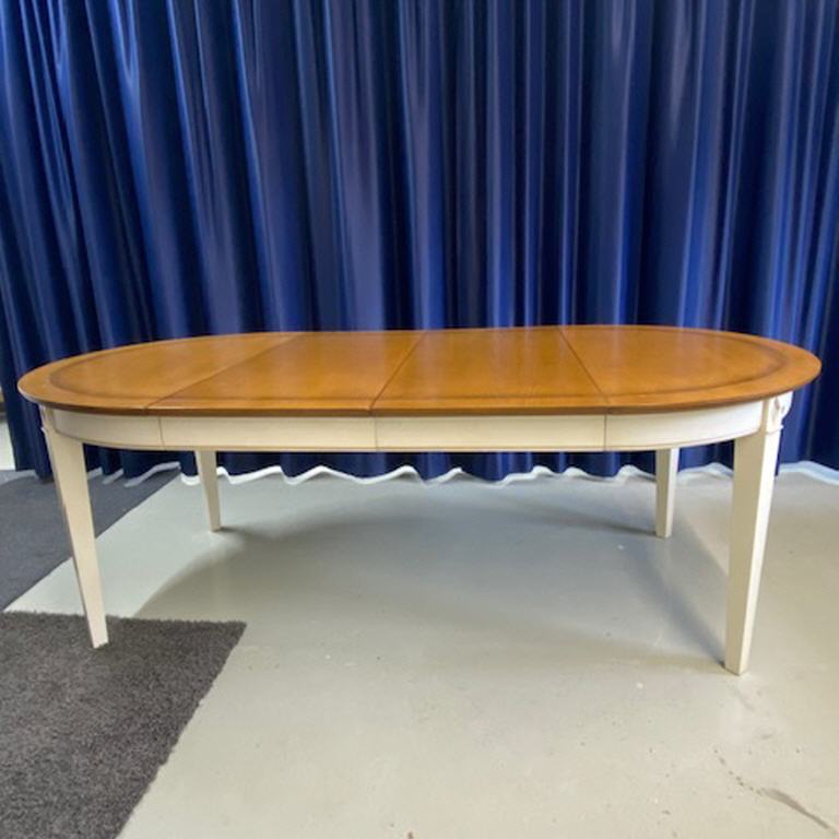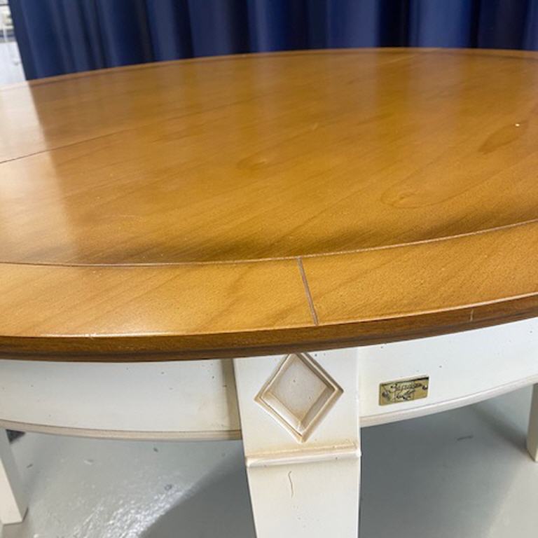Esstisch rund mit 2 Eilnlegeplatten - Gestell weiß - Tischplatte Kirsch natur ( Honig ) - Durchmesser 120 a.Platte 50 H. 76 - Gesamt 220 aus Abverkauf neu !!! € 720,00