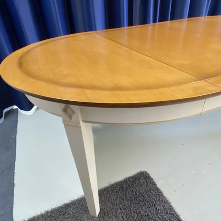 Esstisch rund mit 2 Eilnlegeplatten - Gestell weiß - Tischplatte Kirsch natur ( Honig ) - Durchmesser 120 a.Platte 50 H. 76 - Gesamt 220 aus Abverkauf neu !!! € 720,00 - Neuer Abverkaufspreis € 500,00 -