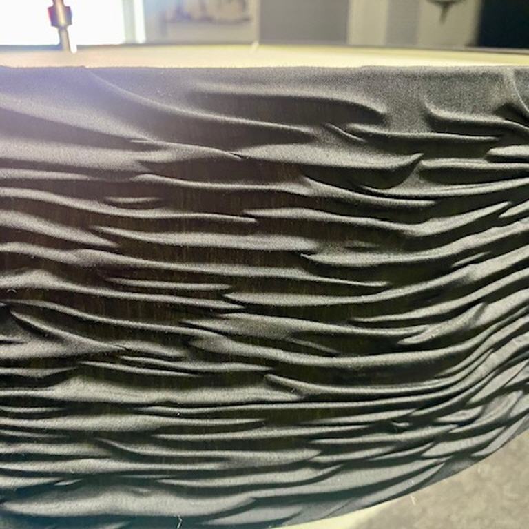 Bogenleuchte - Bielefelder Werkstätten - Edelstahl - Tast Dimmer - Schirm schwarz - H. 190 - Gesamt Tiefe 200 - Schirm Durchm. 55 - Edelstahlplatte 42 x 42 - neu € 400,00 - Neuer Abverkaufspreis € 250,00 -