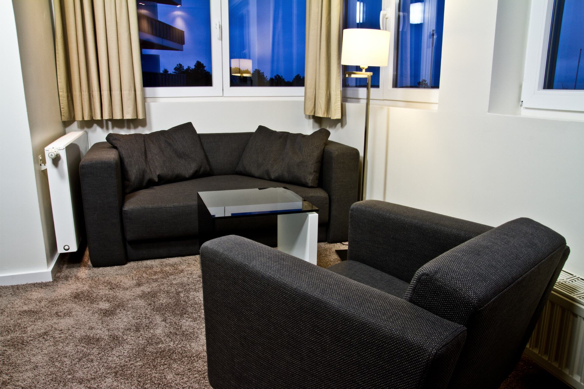 In der Lobby Lounge oder einer der stilvollen, mit Ledersofas einladend gestalteten Sitzecken genießen Gäste des StrandGut Resorts ihren Tee.